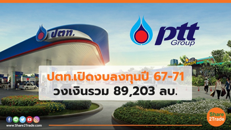 บริษัท ปตท. จำกัด (มหาชน) (“ปตท.”) ขอเรียนให้ทราบว่า คณะกรรมการ ปตท. ในการประชุมครั้งที่ 12/2566 เมื่อ วันที่ 21 ธันวาคม 2566 ได้มีมติอนุมัติงบลงทุน 5 ปี (ปี 2567 - 2571) ของ ปตท. และบริษัทที่ ปตท. ถือหุ้นร้อยละ 100 วงเงินรวม 89,203 ล้านบาท