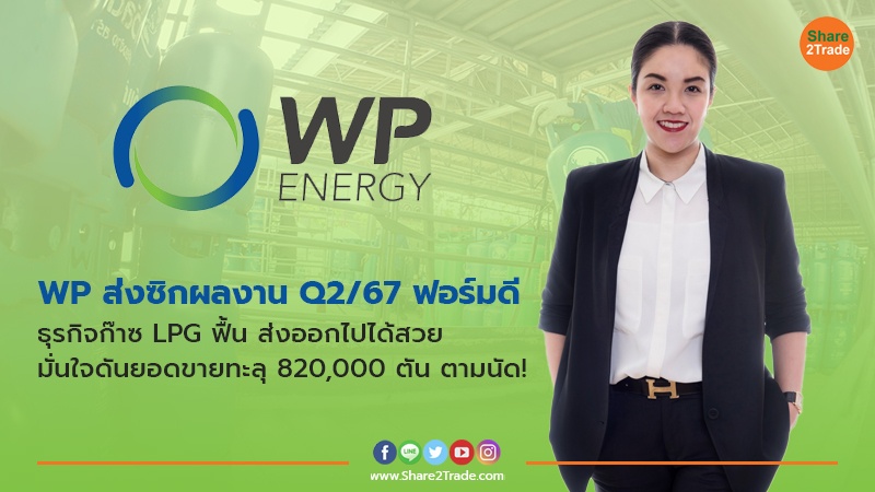 WP ส่งซิกผลงาน Q2/67 ฟอร์มดี ธุรกิจก๊าซ LPG ฟื้น ส่งออกไปได้สวย มั่นใจดันยอดขายทะลุ 820,000 ตัน ตามนัด!