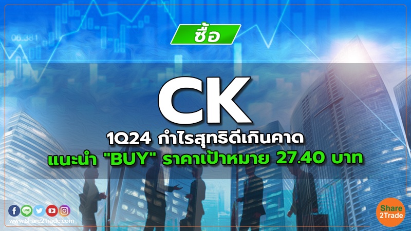CK 1Q24 กำไรสุทธิดีเกินคาด แนะนำ "BUY" ราคาเป้าหมาย 27.40 บาท