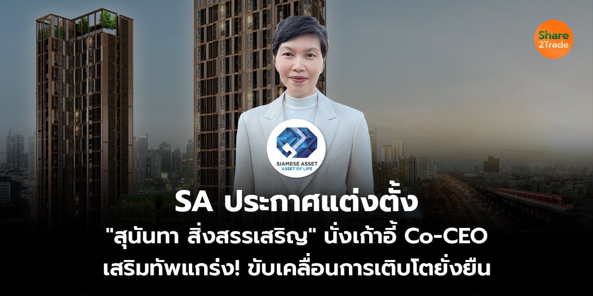 SA ประกาศแต่งตั้ง "สุนันทา สิ่งสรรเสริญ" นั่งเก้าอี้ Co-CEO เสริมทัพแกร่ง! ขับเคลื่อนการเติบโตยั่งยืน