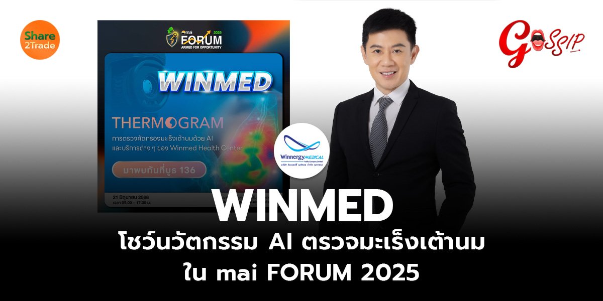 บมจ.วินเนอร์ยี่ เมดิคอล (WINMED) ขนทัพนำนวัตกรรมใหม่สุดล้ำ! ใช้ AI ในการวิเคราะห์ภาพถ่ายความร้อนด้วยวิธี Thermogram.AI เพื่อการตรวจคัดกรองมะเร็งเต้านมในสตรีที่ให้ความเป็นส่วนตัว งานนี้ “ราชันย์ อารยะวงศ์ชัย” CFO คนเก่ง พร้อมทีมงานมากประสบการณ์ จะให้ข้อมูลแบบไม่มีกั๊ก พร้อมแจกของรางวัลมากมายให้กับผู้มาเยี่ยมชม...แล้วพบกันได้ที่บูธ 136 ในงาน mai FORUM 2025 มหกรรมรวมพลังคน mai ครั้งที่ 9 ในวันที่ 21 มิ.ย.68 นี้ ตั้งแต่เวลา 09.30 - 17.00 น. ณ ห้องบางกอกคอนเวนชันเซ็นเตอร์ ชั้น 22 โรงแรมเซ็นทารา แกรนด์ แอท เซ็นทรัลเวิลด์ กทม. งานนี้สายรักสุขภาพห้ามพลาดกันนะคร้าบบ!